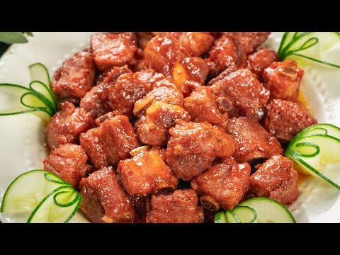 So beautiful Caramelized Pork Ribs but no need caramel sauce [cooking sound]